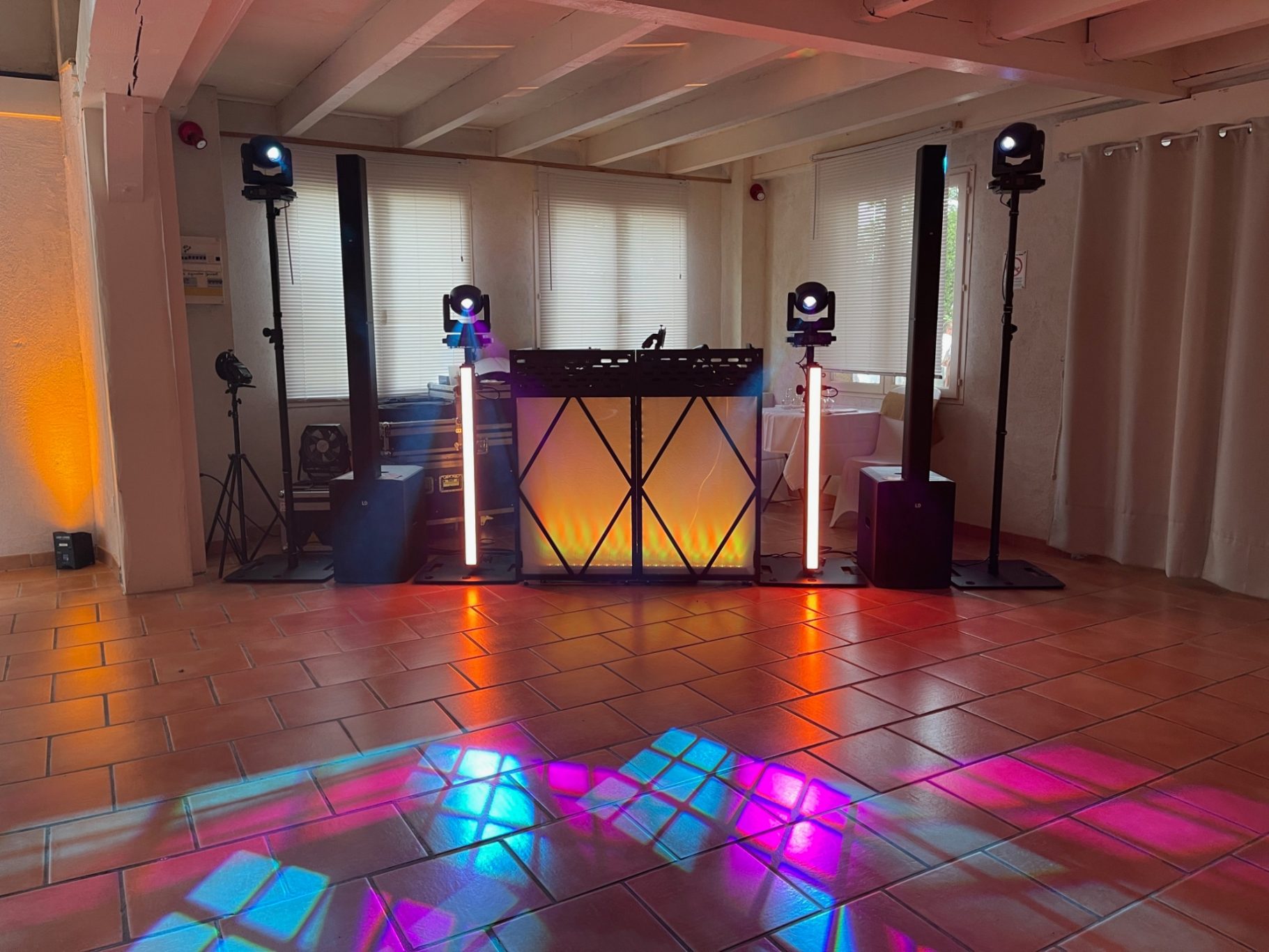 Cette installation projettera sur tous les murs de votre salle une lumière d'ambiance douce et agréable tout au long de votre soirée.