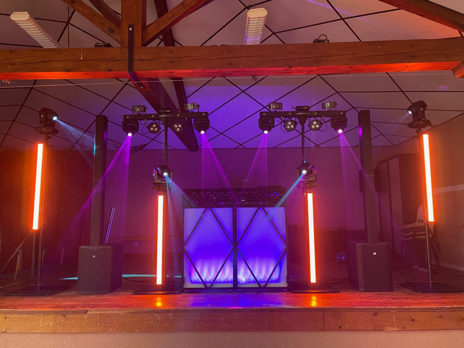 Les salles sont généralement éclairées de la même manière : lumière blanche, tube néon , etc... C'est pour changer cela que je vous propose une installation complète d'éclairage d'ambiance. Divers solution, à partir de 10 projecteurs à LED multicolor sur batterie.