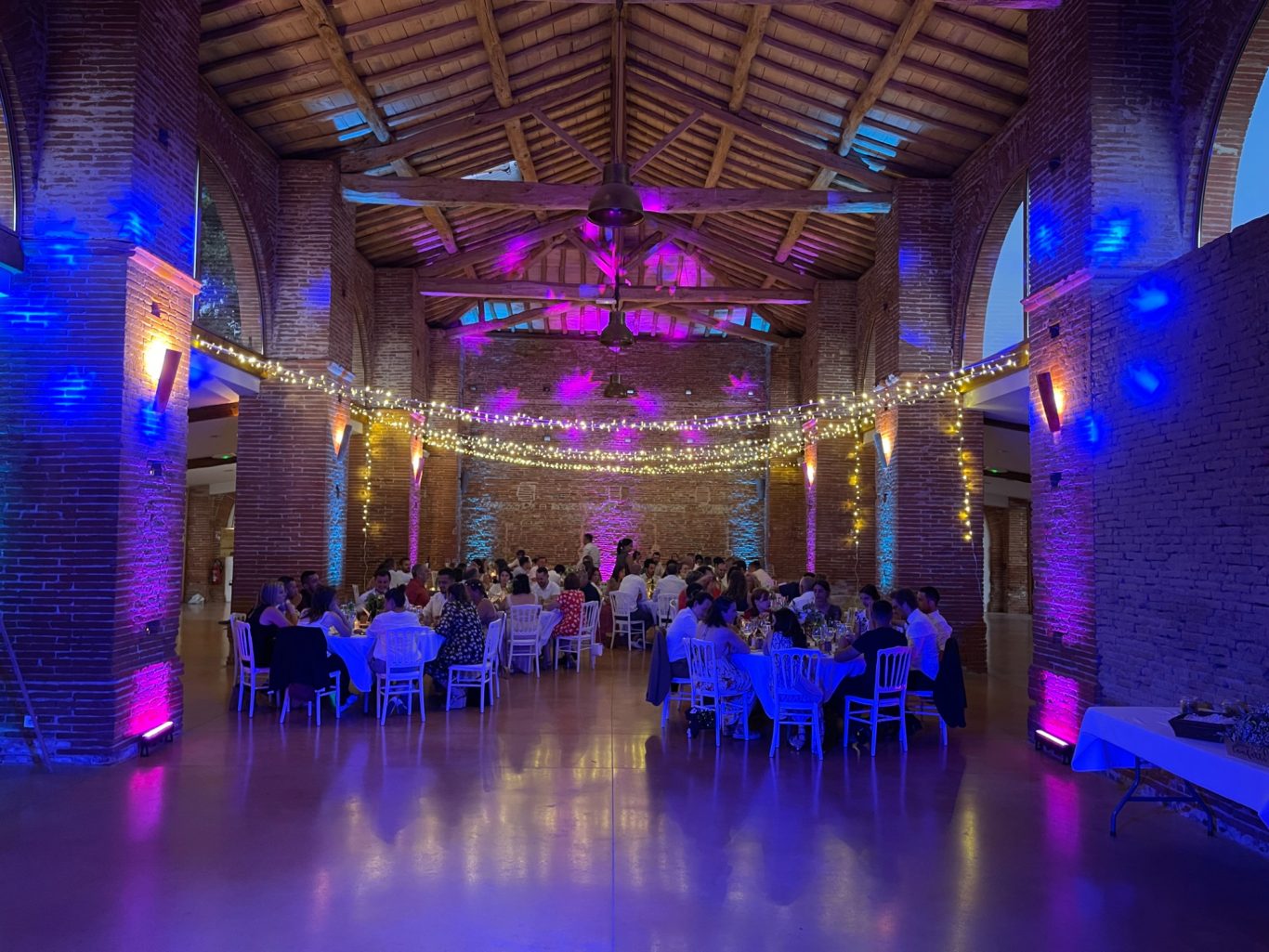 Notre installation de lumière tamisée sera répartie dans toute la salle afin de mettre en valeur et faire ressortir vos plus belles décorations et l'architecture de votre lieu de réception.