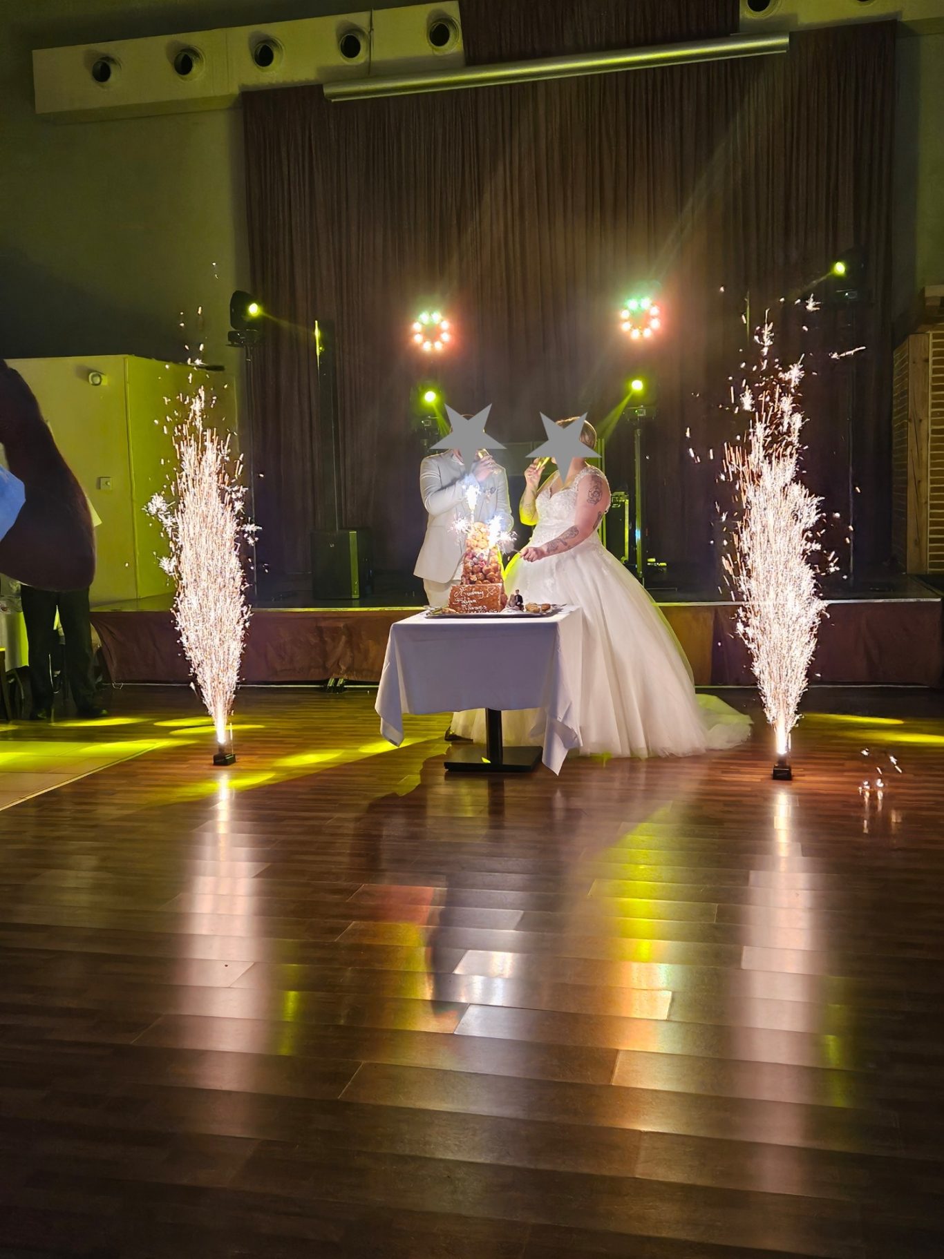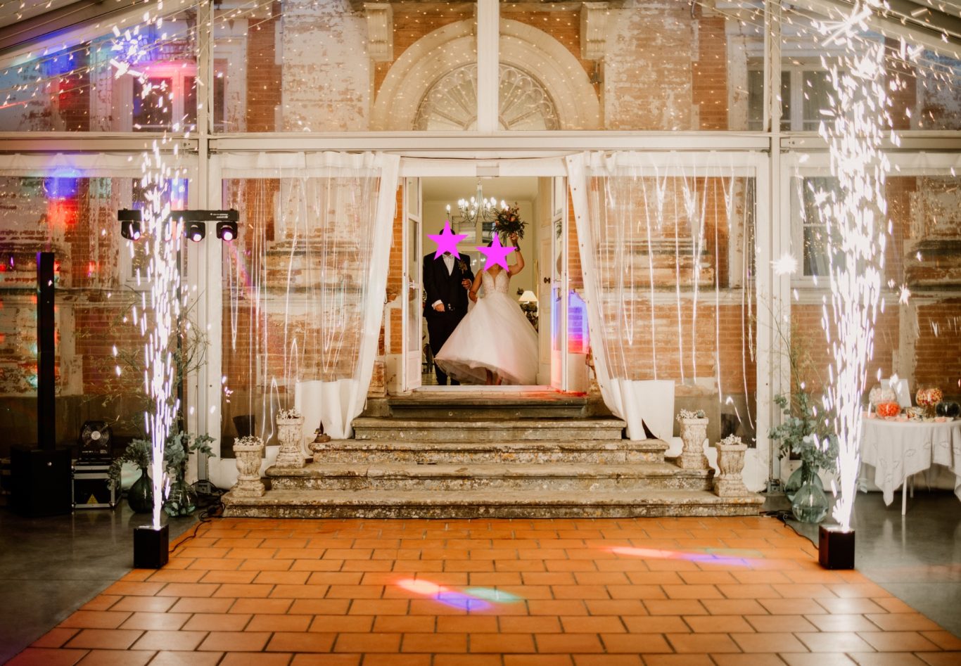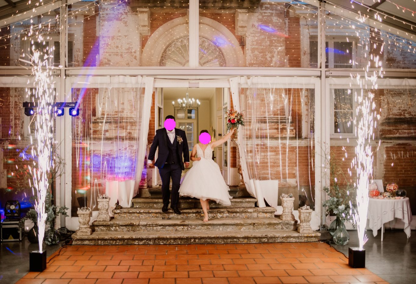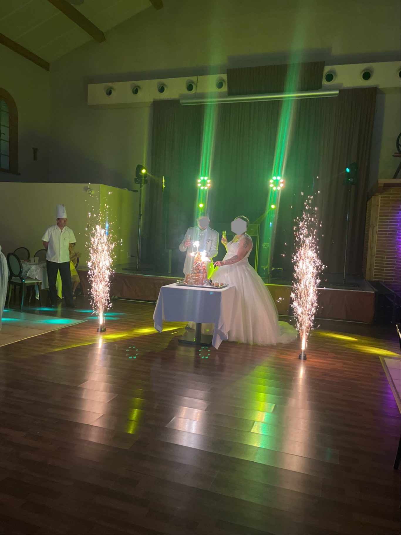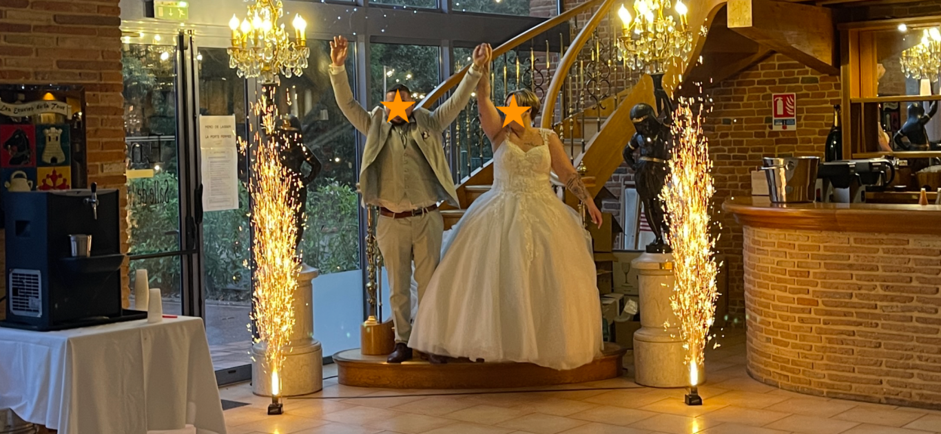 Mise en place de Gerbes d'éteincelles pour votre entrée en salle, votre présentation de dessert, ou encore pour votreouverture de bal.
