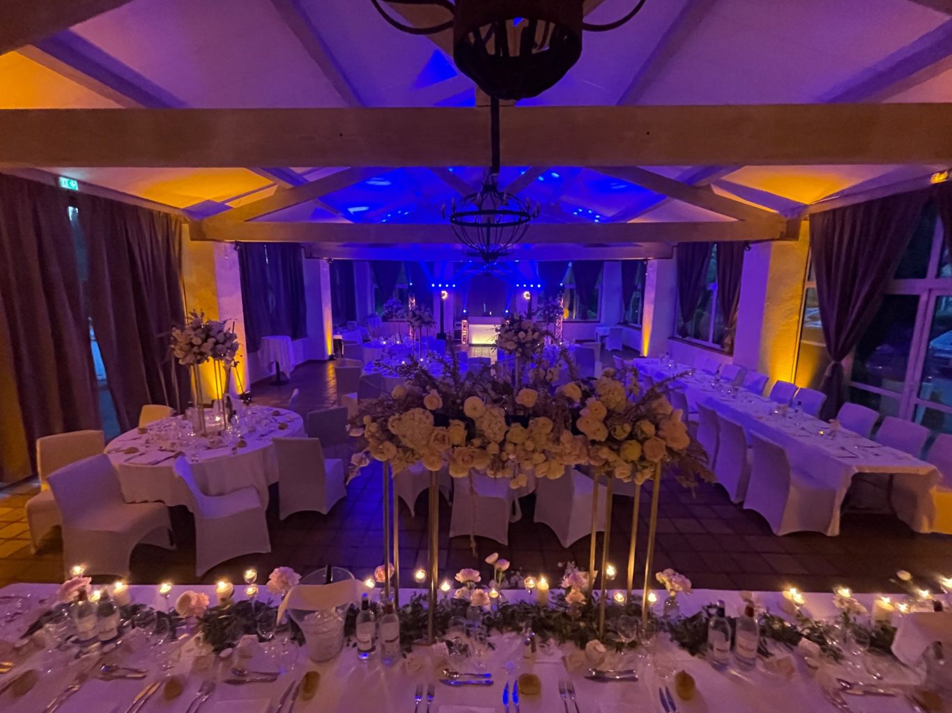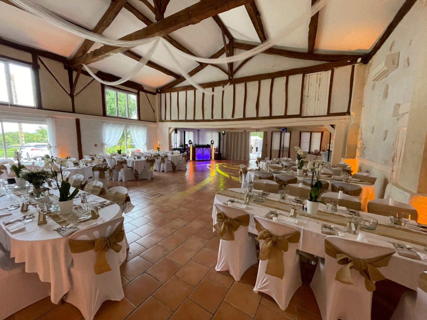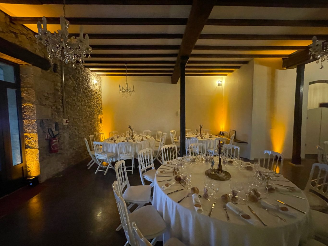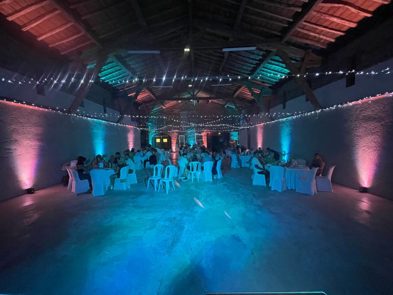 Notre installation de lumière tamisée sera répartie dans toute la salle afin de mettre en valeur et faire ressortir vos plus belles décorations et l'architecture de votre lieu de réception.