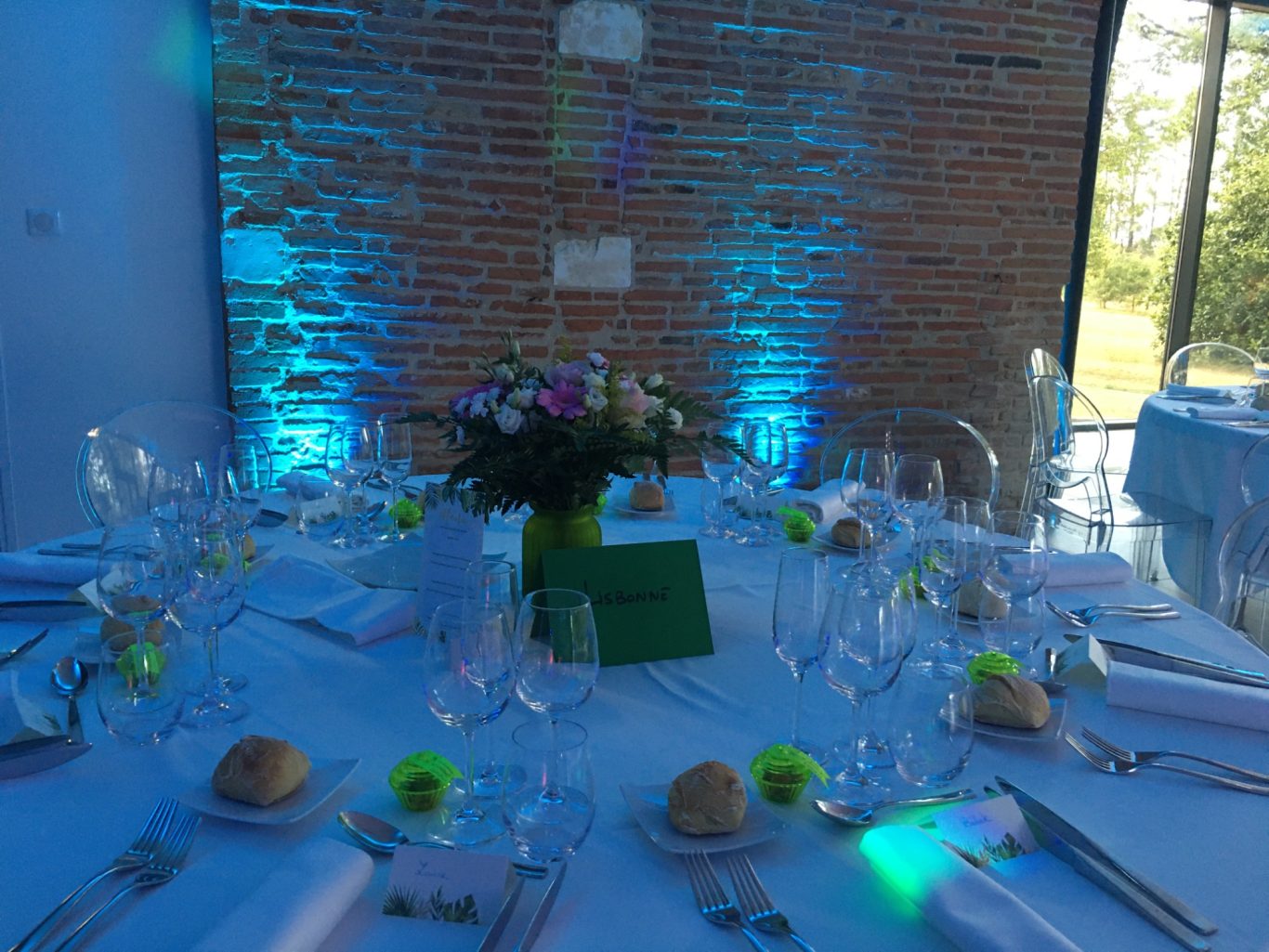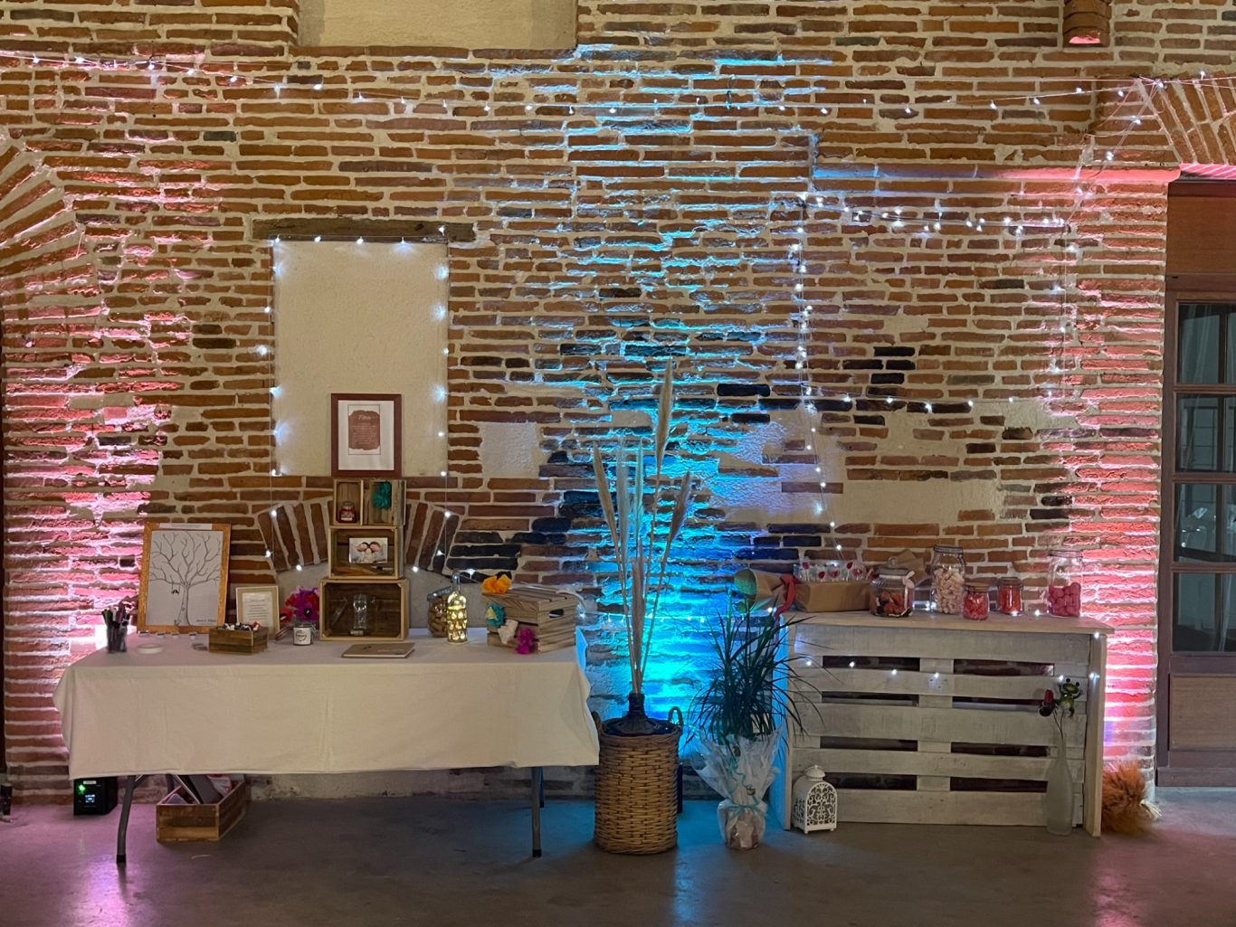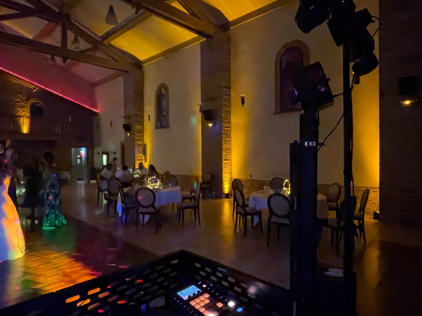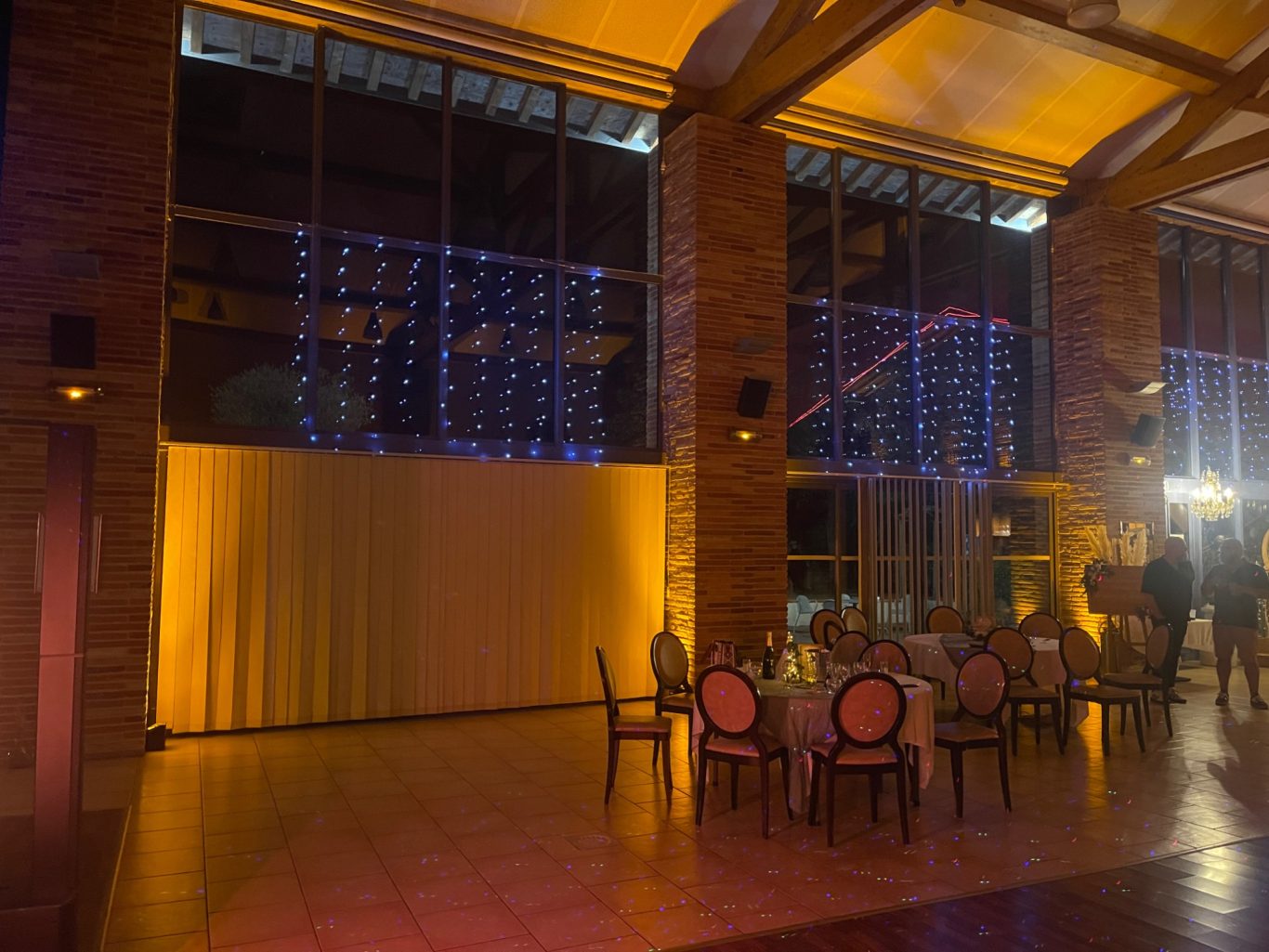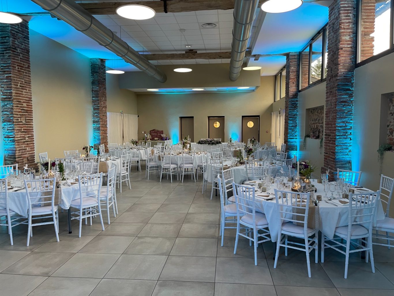 Notre installation de lumière tamisée sera répartie dans toute la salle afin de mettre en valeur et faire ressortir vos plus belles décorations et l'architecture de votre lieu de réception.