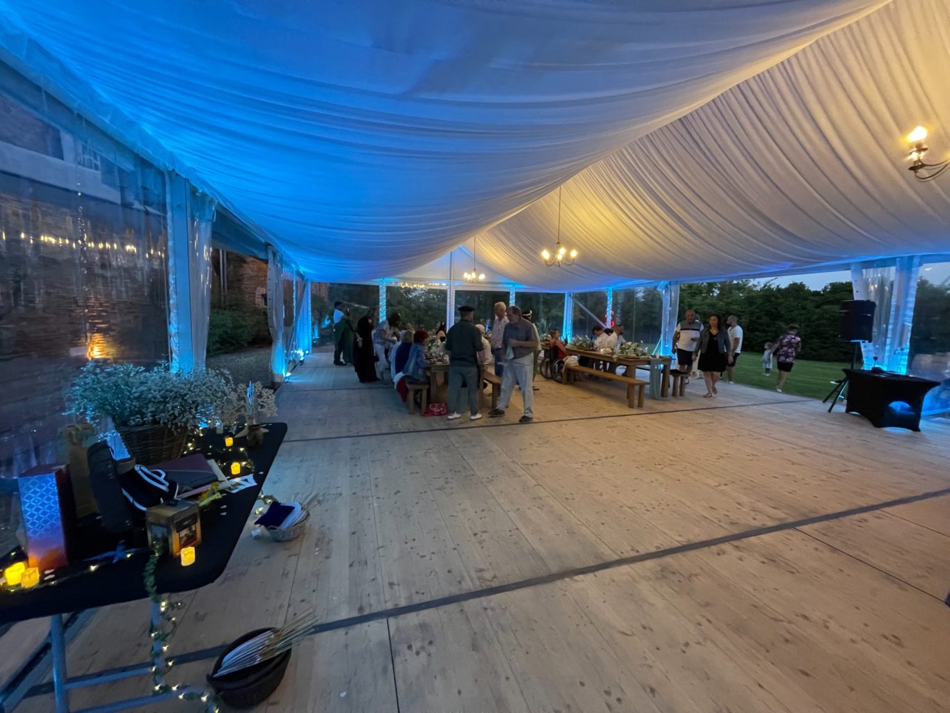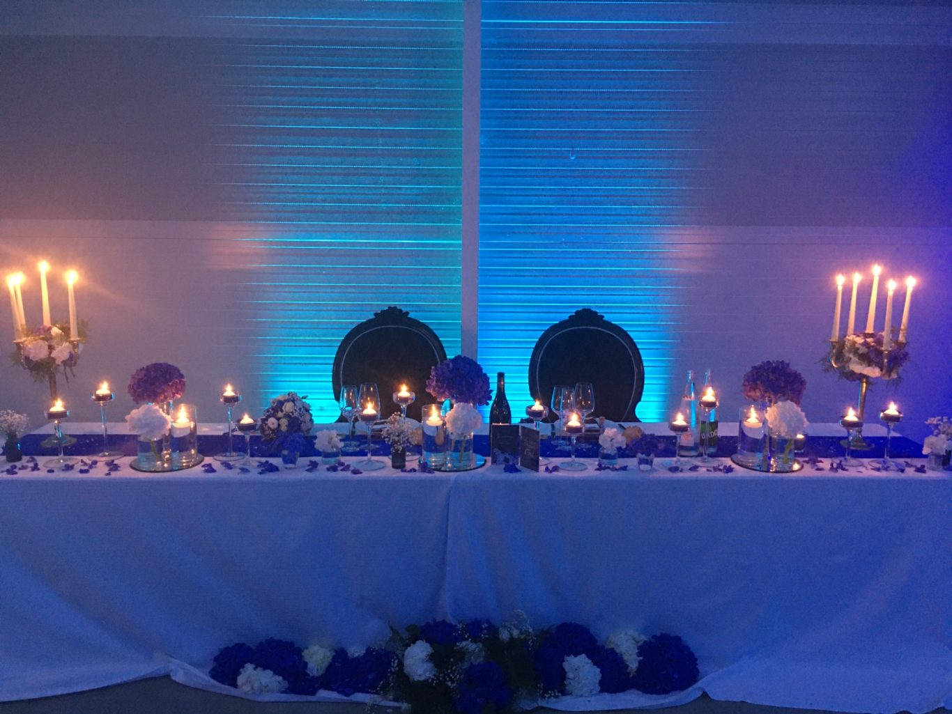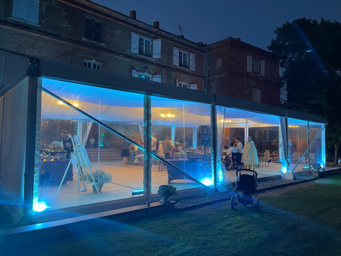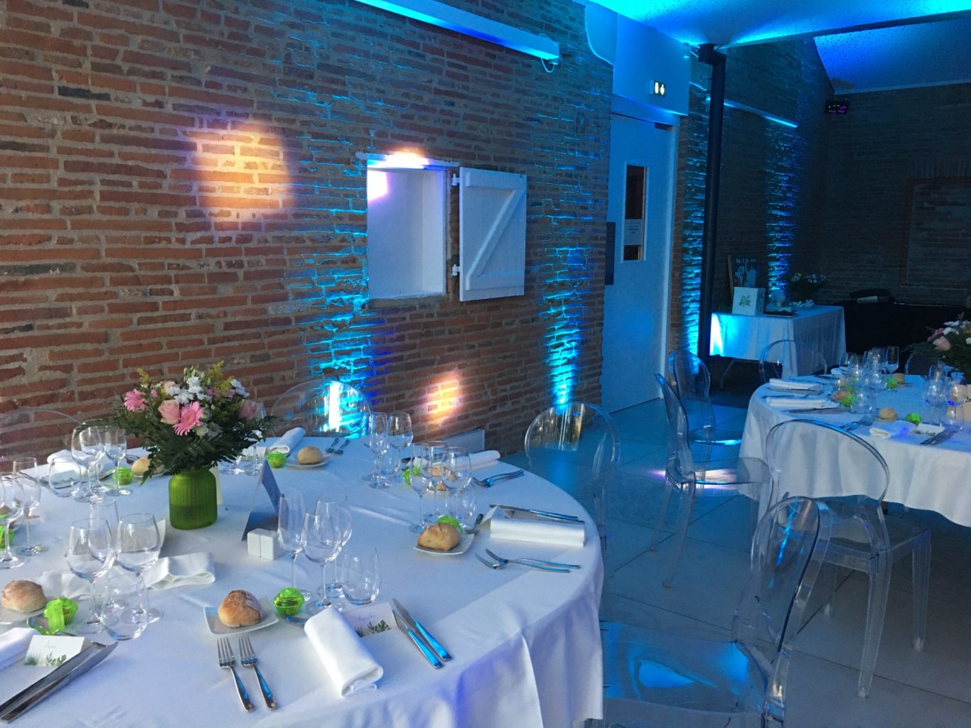 Notre installation de lumière tamisée sera répartie dans toute la salle afin de mettre en valeur et faire ressortir vos plus belles décorations et l'architecture de votre lieu de réception.