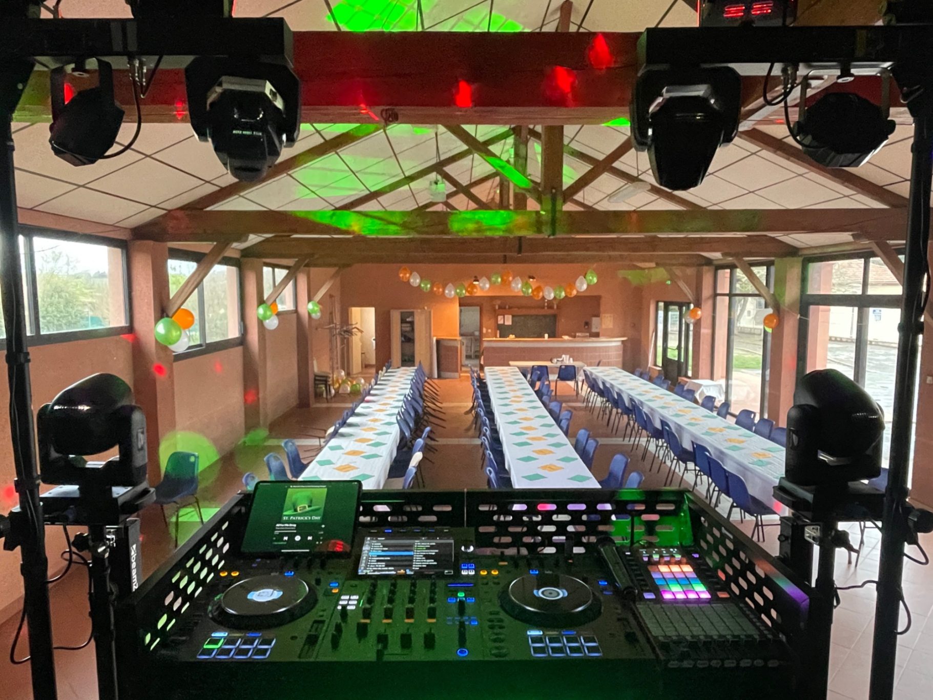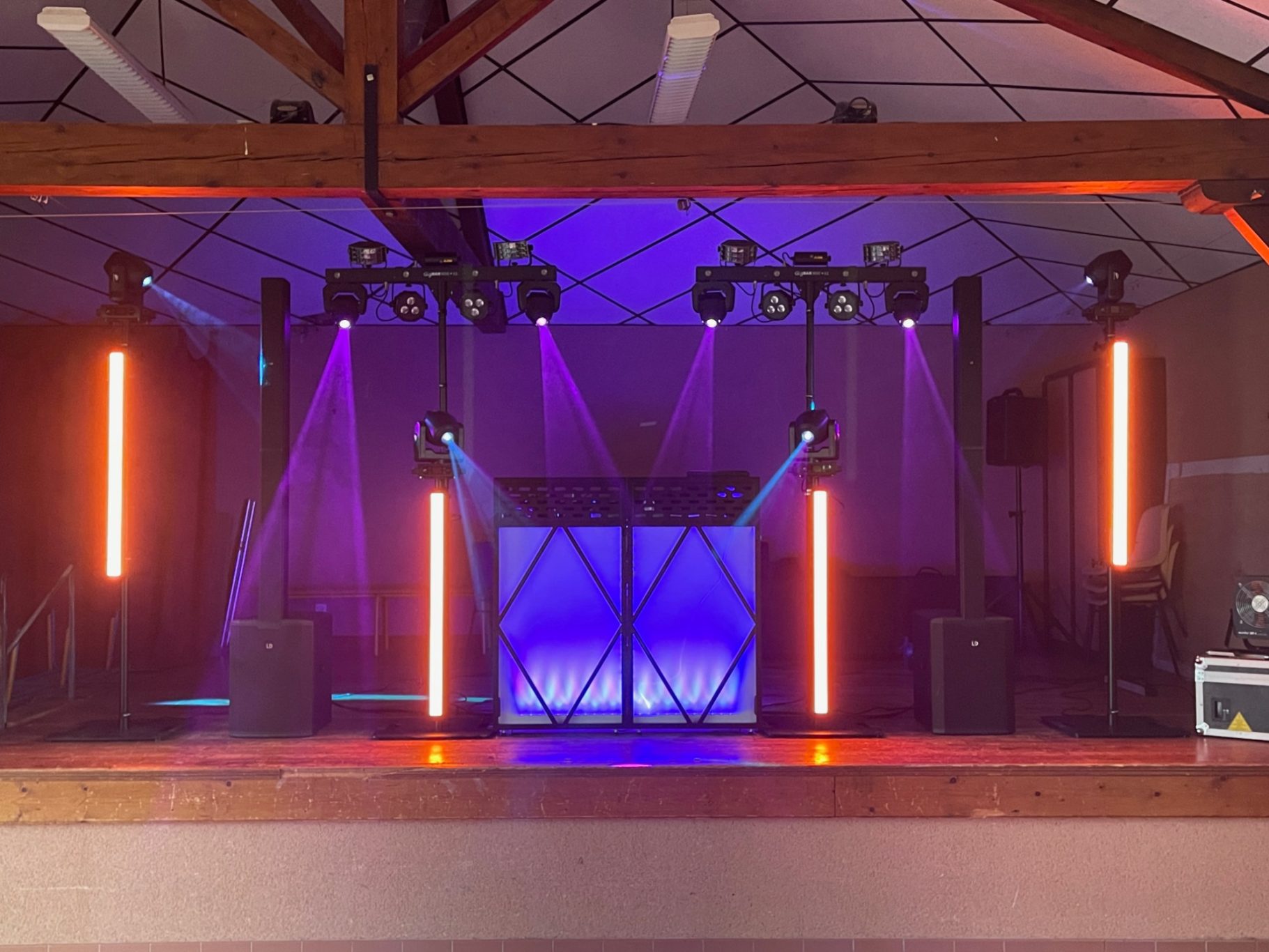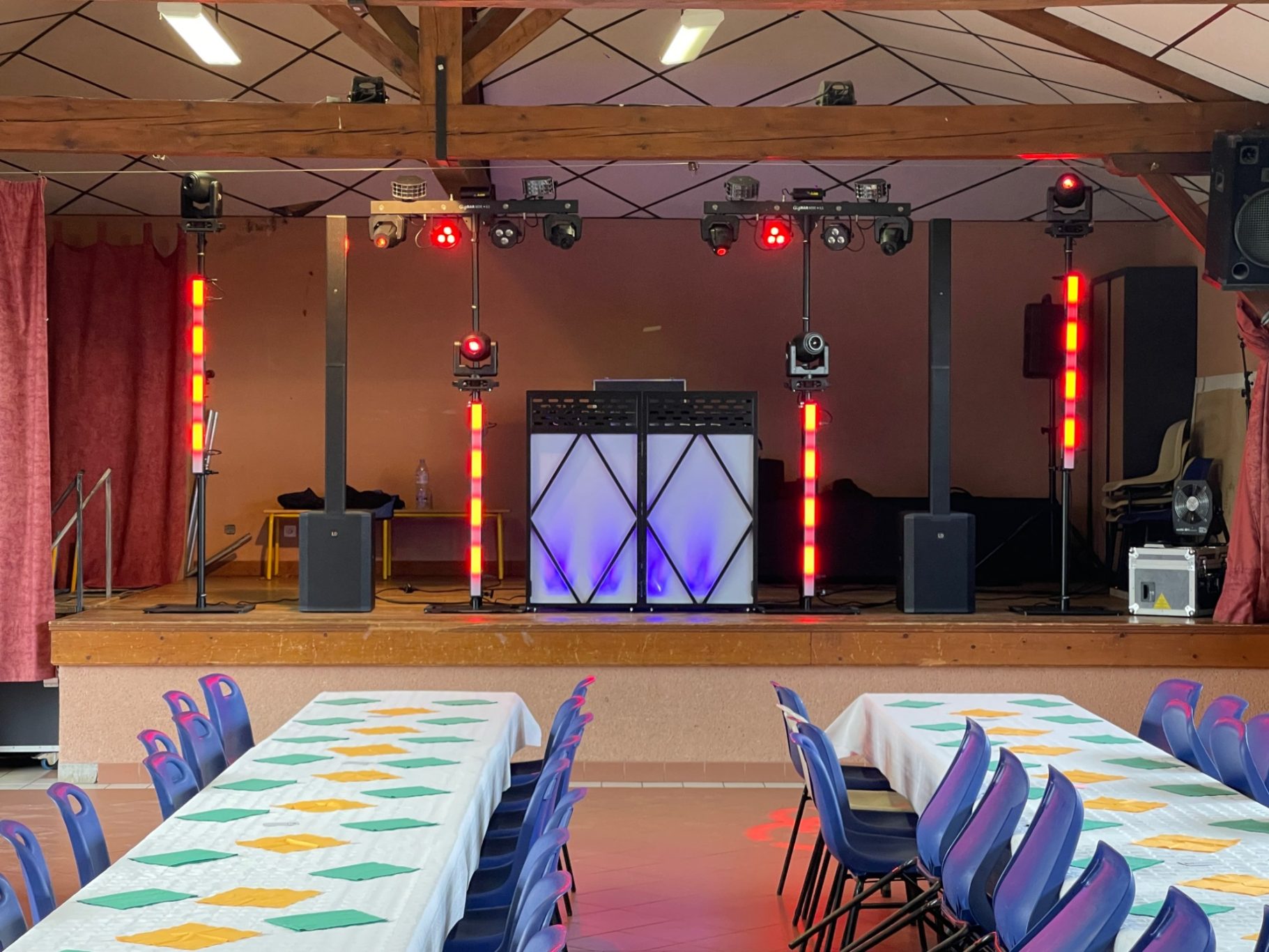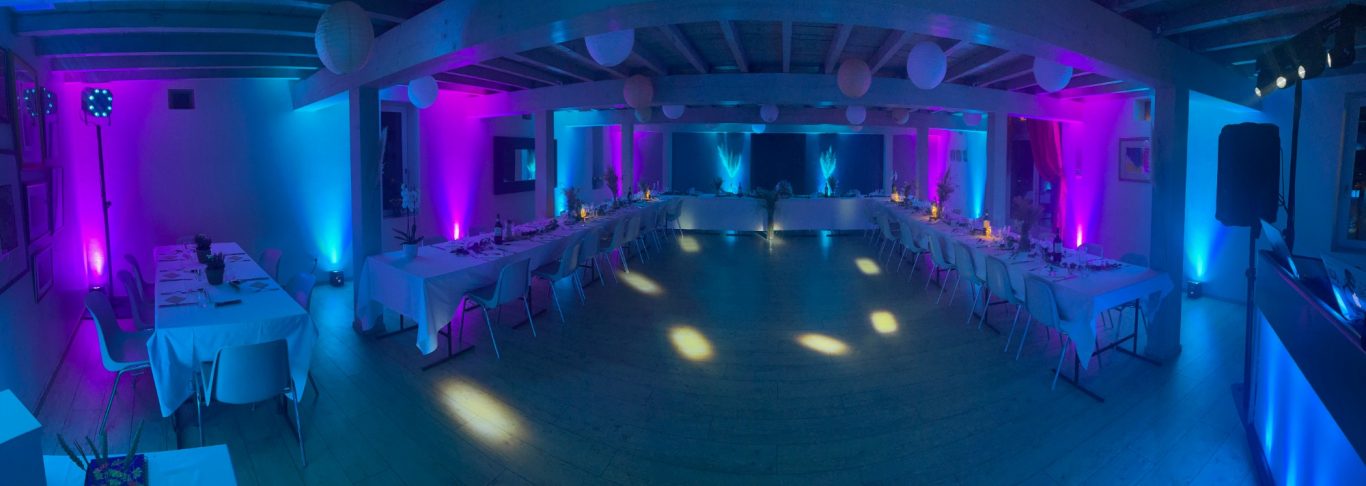 Les salles sont généralement éclairées de la même manière : lumière blanche, tube néon , etc... C'est pour changer cela que je vous propose une installation complète d'éclairage d'ambiance. Divers solution, à partir de 10 projecteurs à LED multicolor sur batterie.