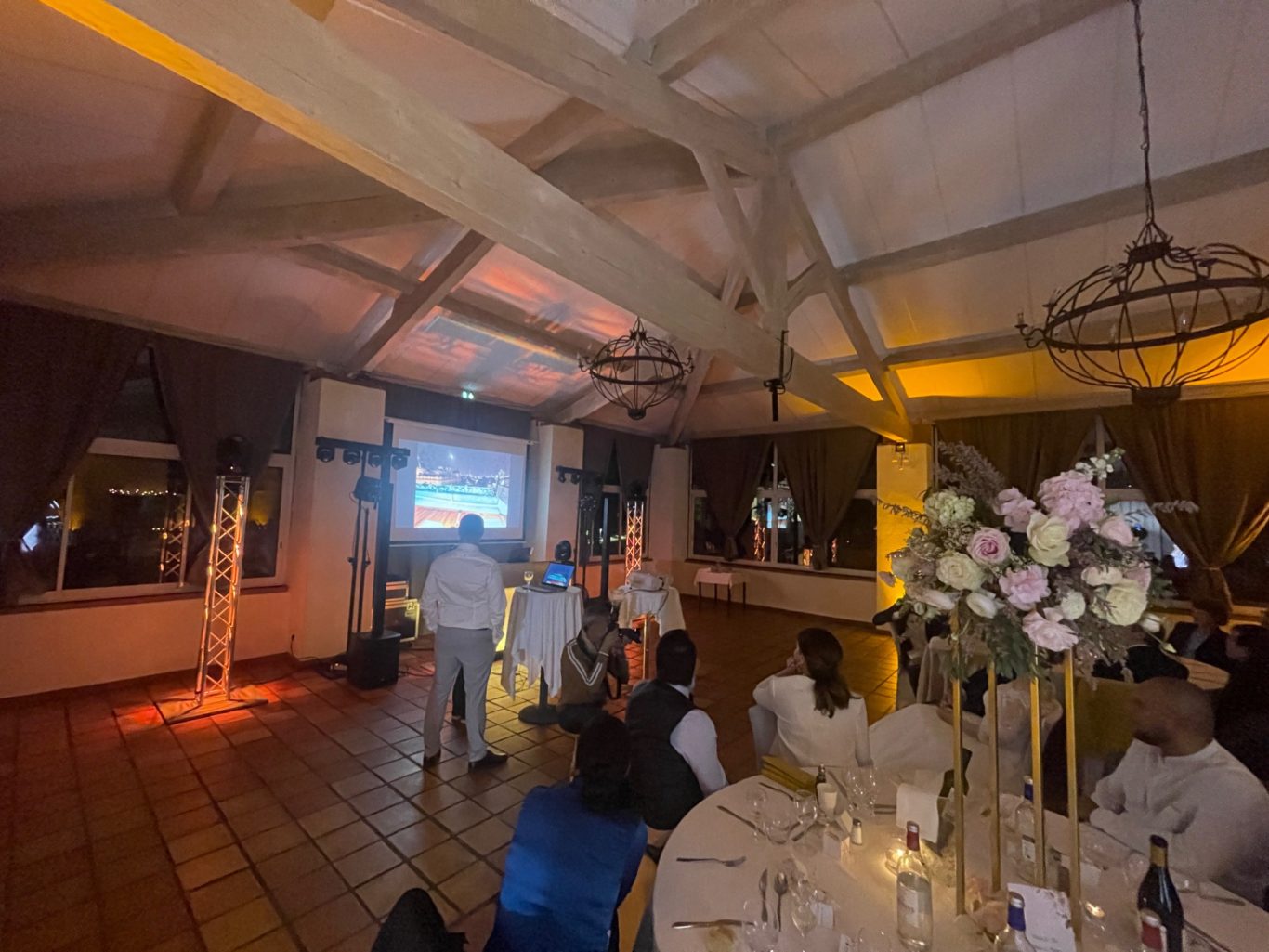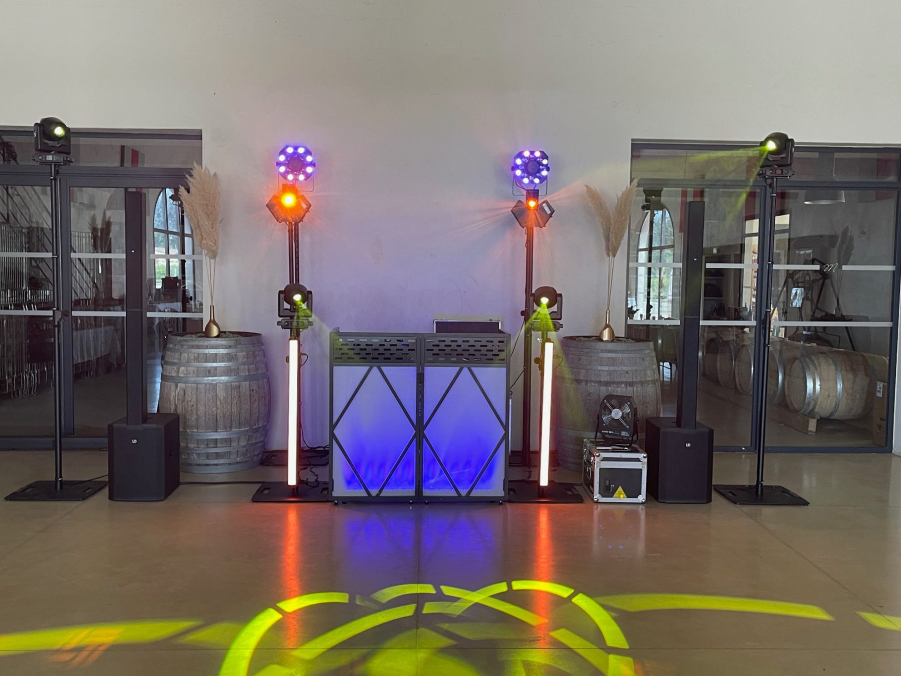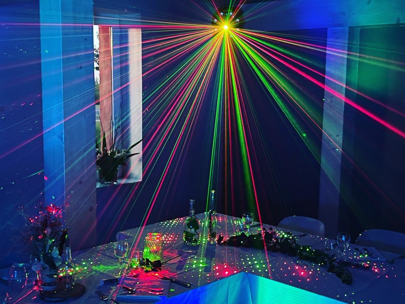 Cette installation projettera sur tous les murs de votre salle une lumière d'ambiance douce et agréable tout au long de votre soirée.